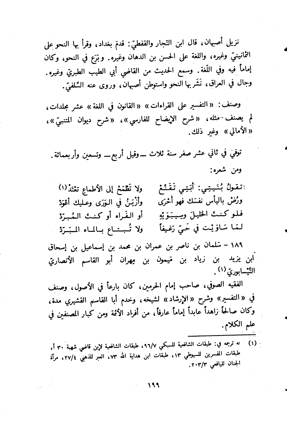 (¬1) له ترجمة في: طبقات الشافعية للسبكي 7/ 96، طبقات الشافعية لابن قاضي شهبة 30 أ، طبقات المفسرين للسيوطي 13، طبقات ابن هداية الله 73، العبر للذهبي 4/ 27، مرآة الجنان لليافعي 3/ 203.