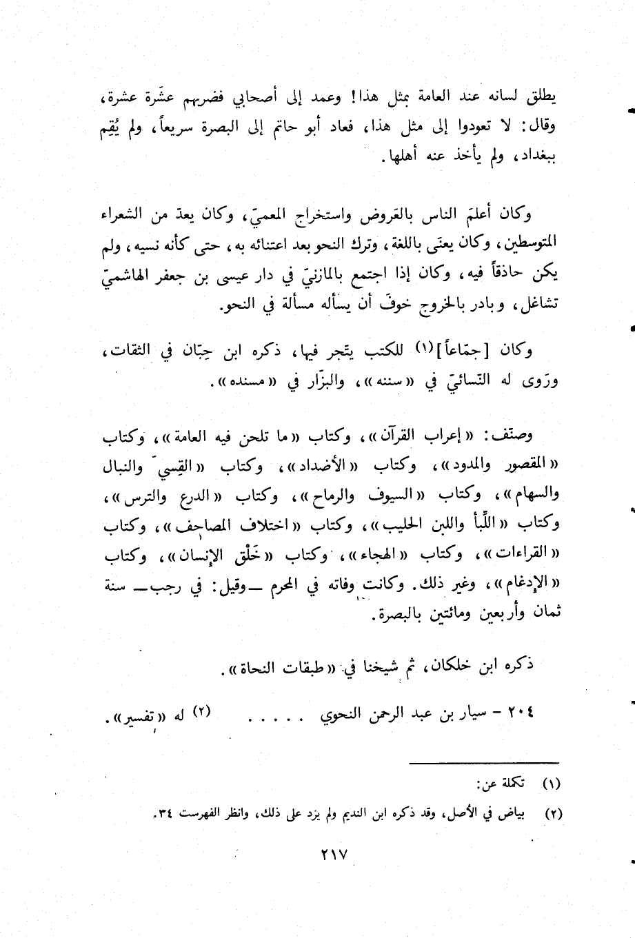 204 - سيار بن عبد الرحمن النحوي ..... (¬2) له «تفسير».