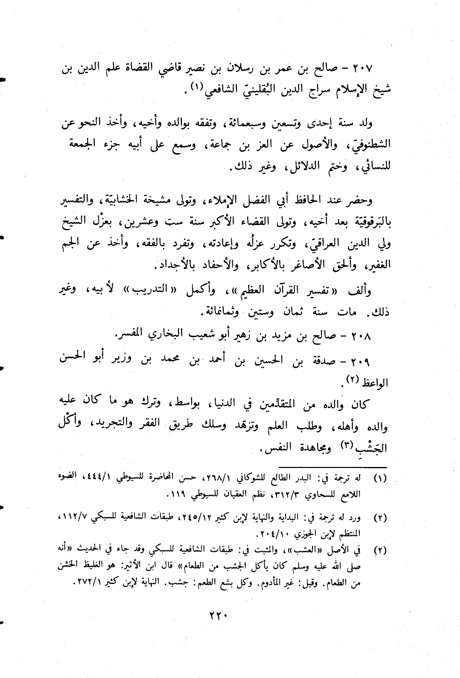 (¬3) في الأصل «العشب»، والمثبت في: طبقات الشافعية للسبكي وقد جاء في الحديث «أنه صلى الله عليه وسلم كان يأكل الجشب من الطعام» قال ابن الأثير: هو الغليظ الخشن من الطعام. وقيل: غير المأدوم. وكل بشع الطعم: جشب. النهاية لابن كثير 1/ 272.