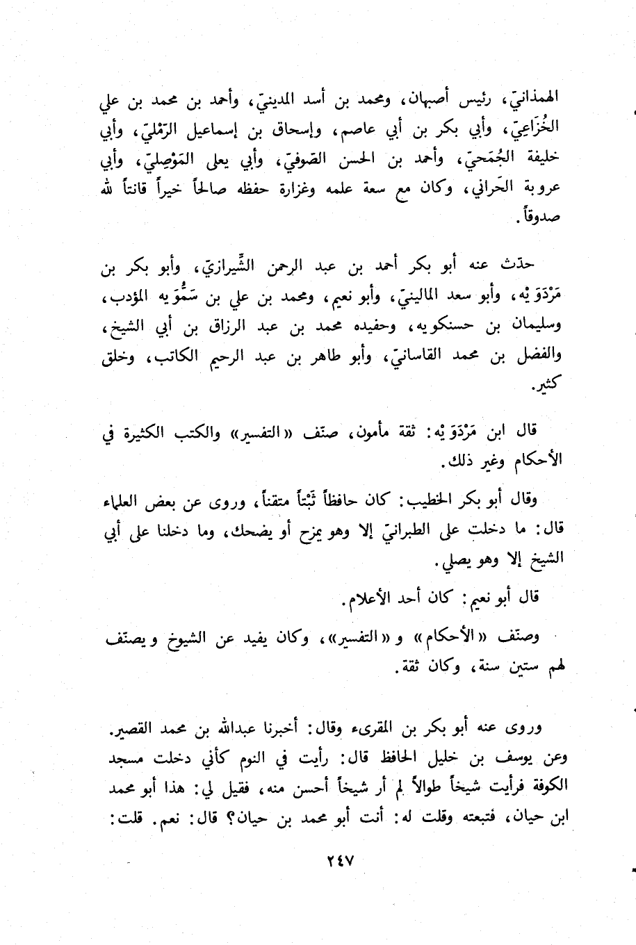 قال ابن مردويه: ثقة مأمون، صنّف «التفسير» والكتب الكثيرة في الأحكام وغير ذلك.