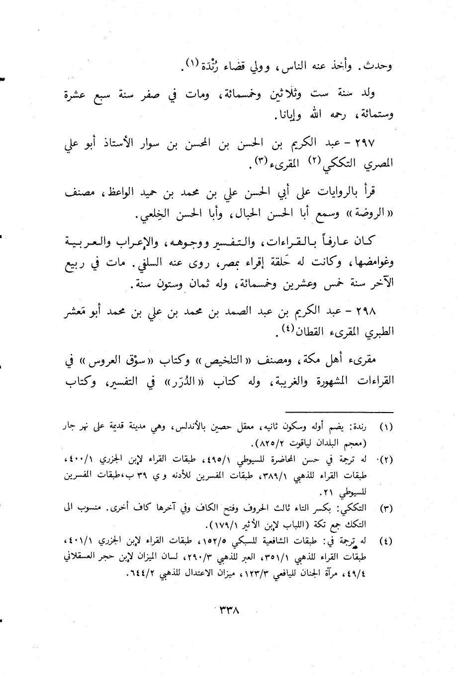 (¬2) له ترجمة في حسن المحاضرة للسيوطي 1/ 495، طبقات القراء لابن الجزري 1/ 400، طبقات القراء للذهبي 1/ 389، طبقات المفسرين للأدنةوي 39 ب، طبقات المفسرين للسيوطي 21.