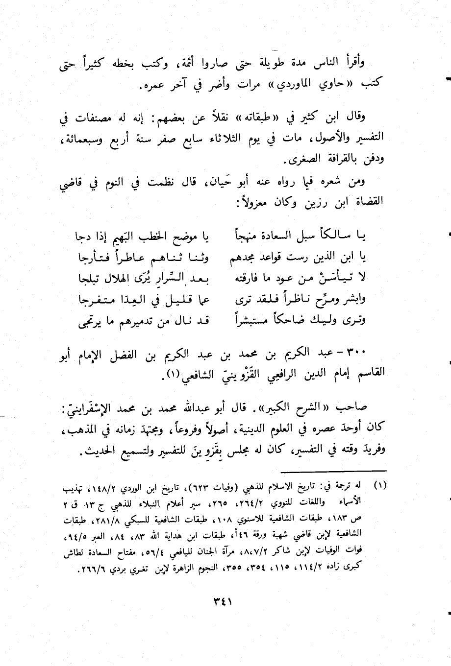 300 - عبد الكريم بن محمد بن عبد الكريم بن الفضل الإمام أبو القاسم إمام الدين الرافعي القزوينيّ الشافعي (¬1).