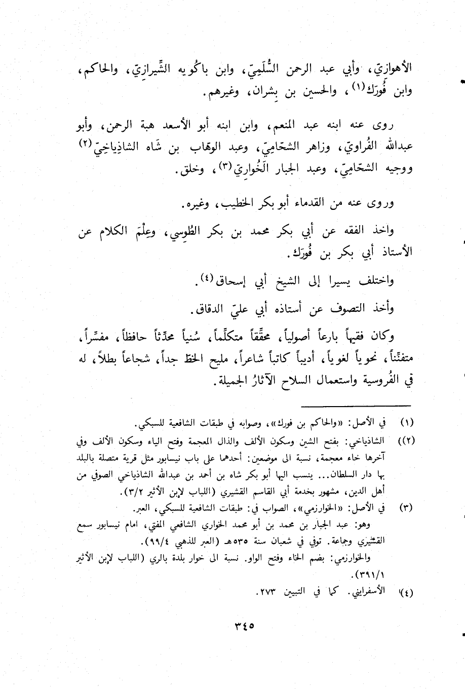 (¬1) في الأصل: «والحاكم بن فورك»، وصوابه في طبقات الشافعية للسبكي.
