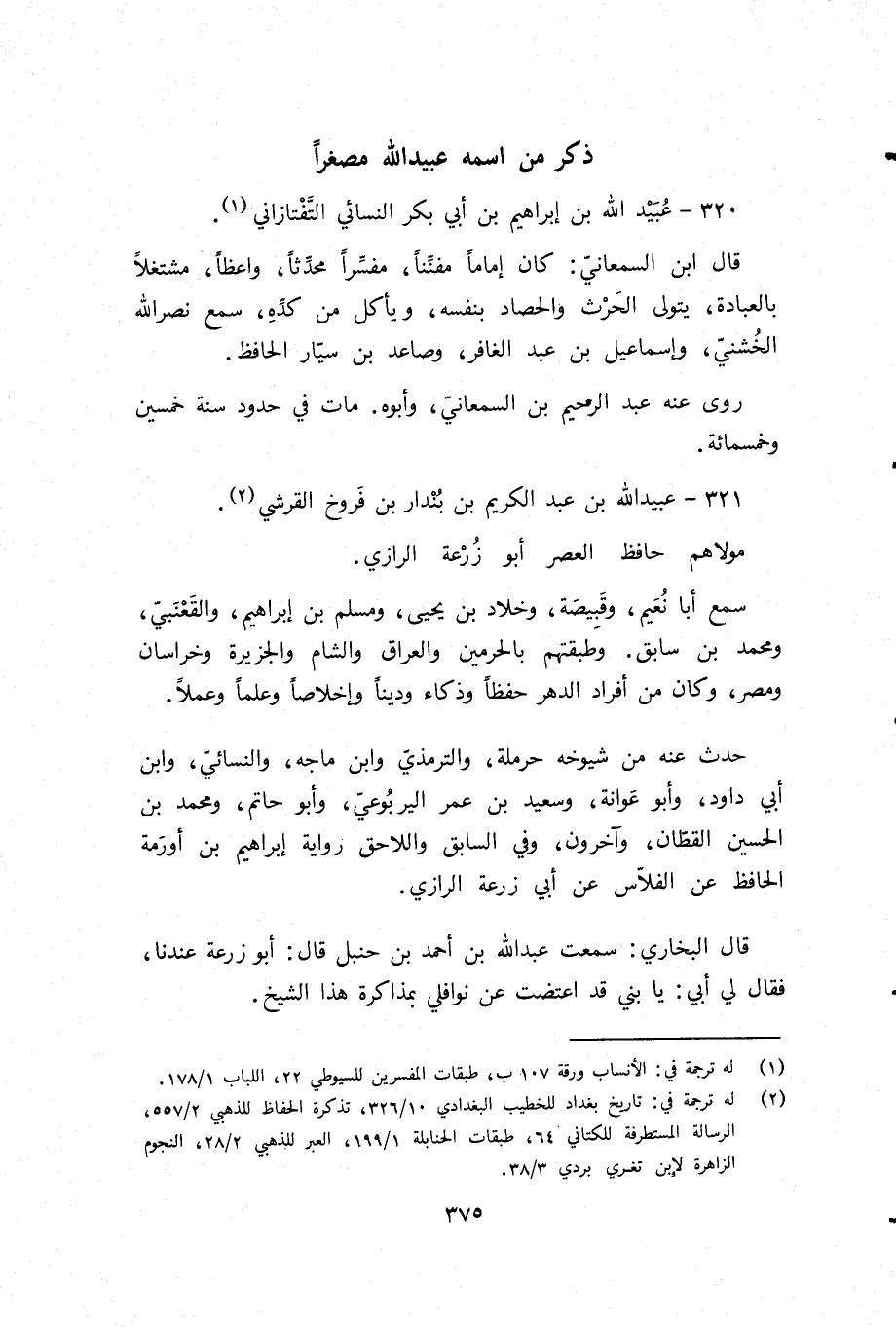 (¬2) له ترجمة في: تاريخ بغداد للخطيب البغدادي 10/ 326، تذكرة الحفاظ للذهبي 2/ 557، الرسالة المستطرفة للكتاني 64، طبقات الحنابلة 1/ 199، العبر للذهبي 2/ 28، النجوم الزاهرة لابن تغري بردي 3/ 38.