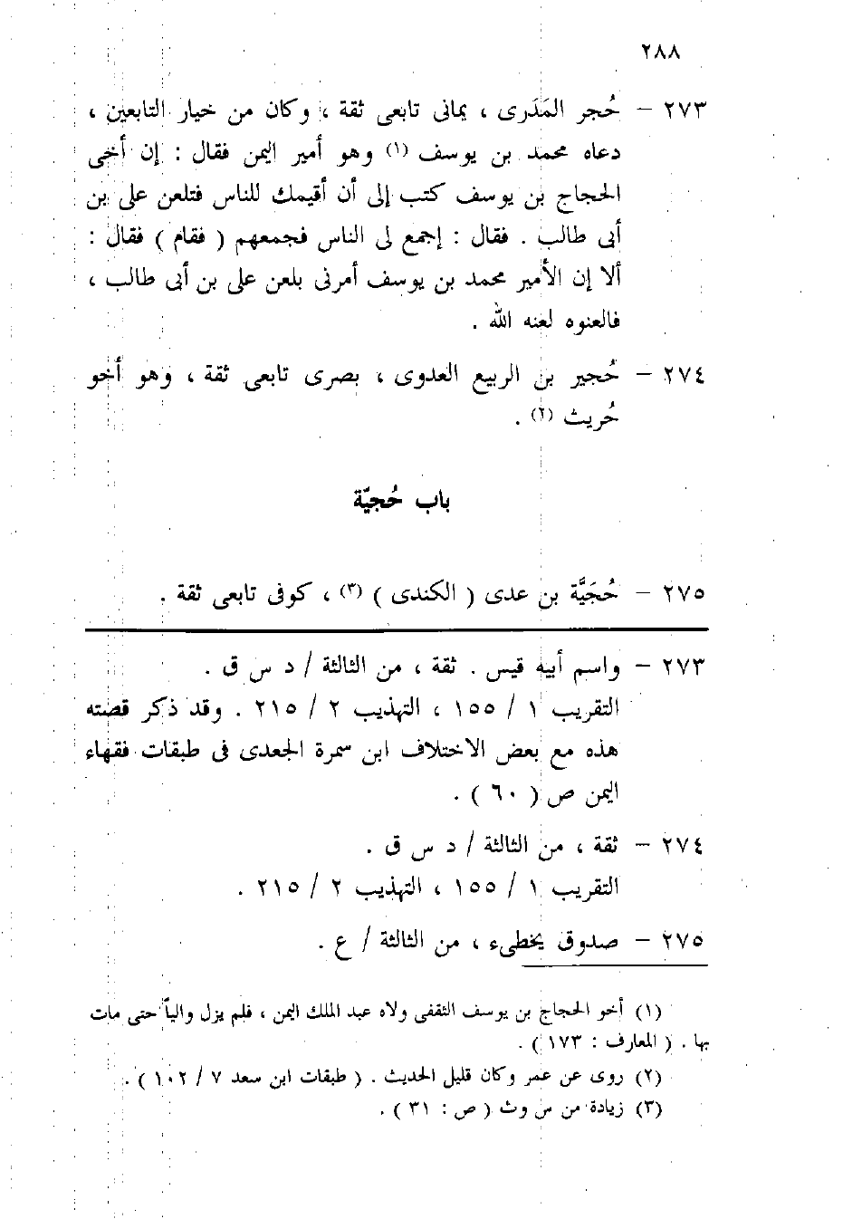 275 - حجية بن عدى الْكِنْدِيّ كوفى تَابِعِيّ ثِقَة