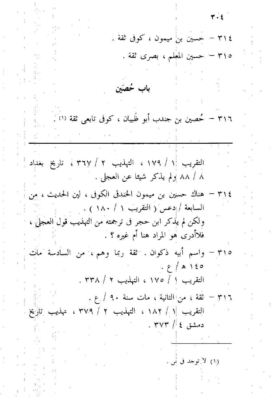 316 - حُصَيْن بن جُنْدُب أَبُو ظبْيَان كوفى تَابِعِيّ ثِقَة