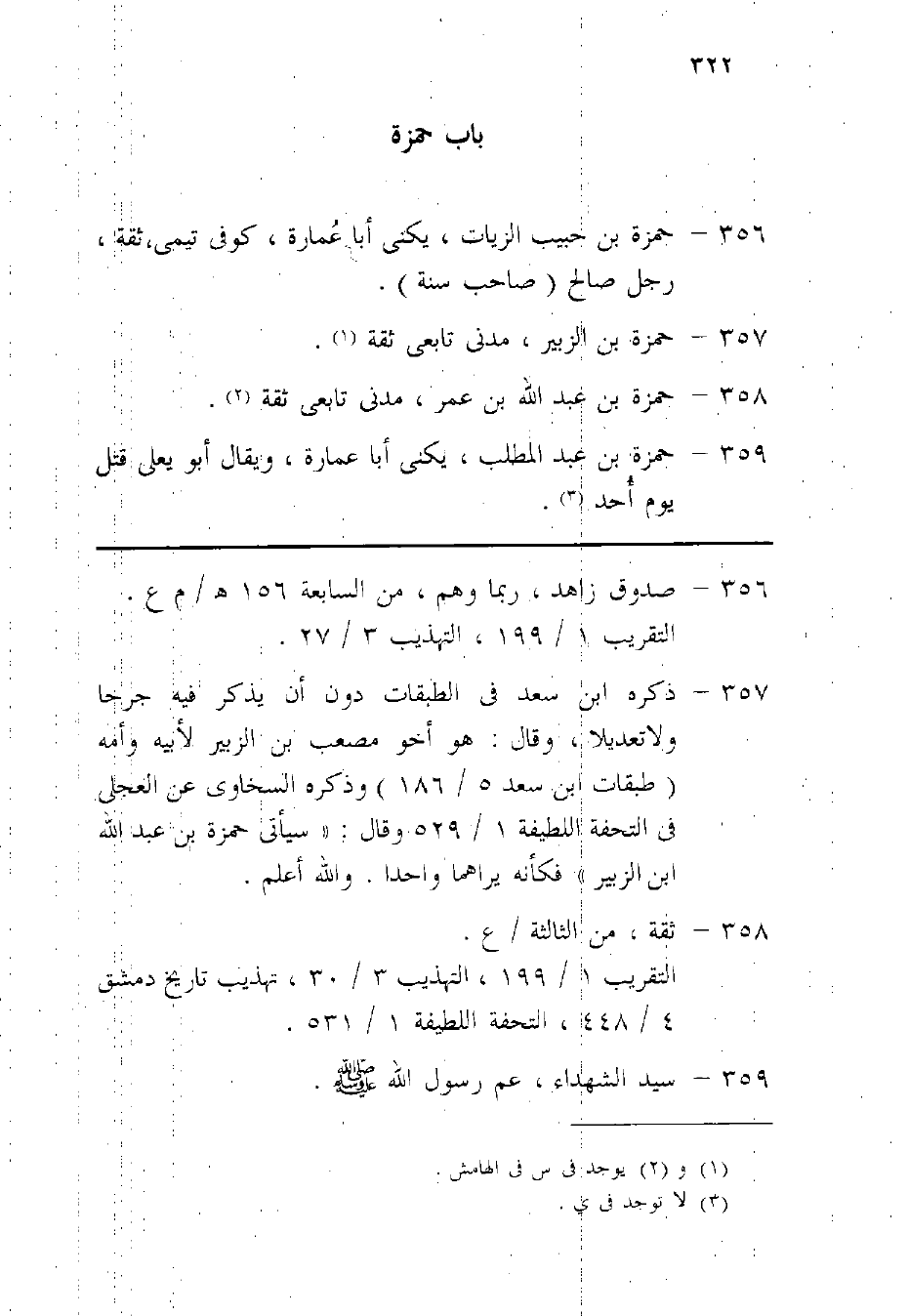 356 - حَمْزَة بن حبيب الزيات يكنى أَبَا عمَارَة كوفى تيمى ثِقَة رجل صَالح صَاحب سنة