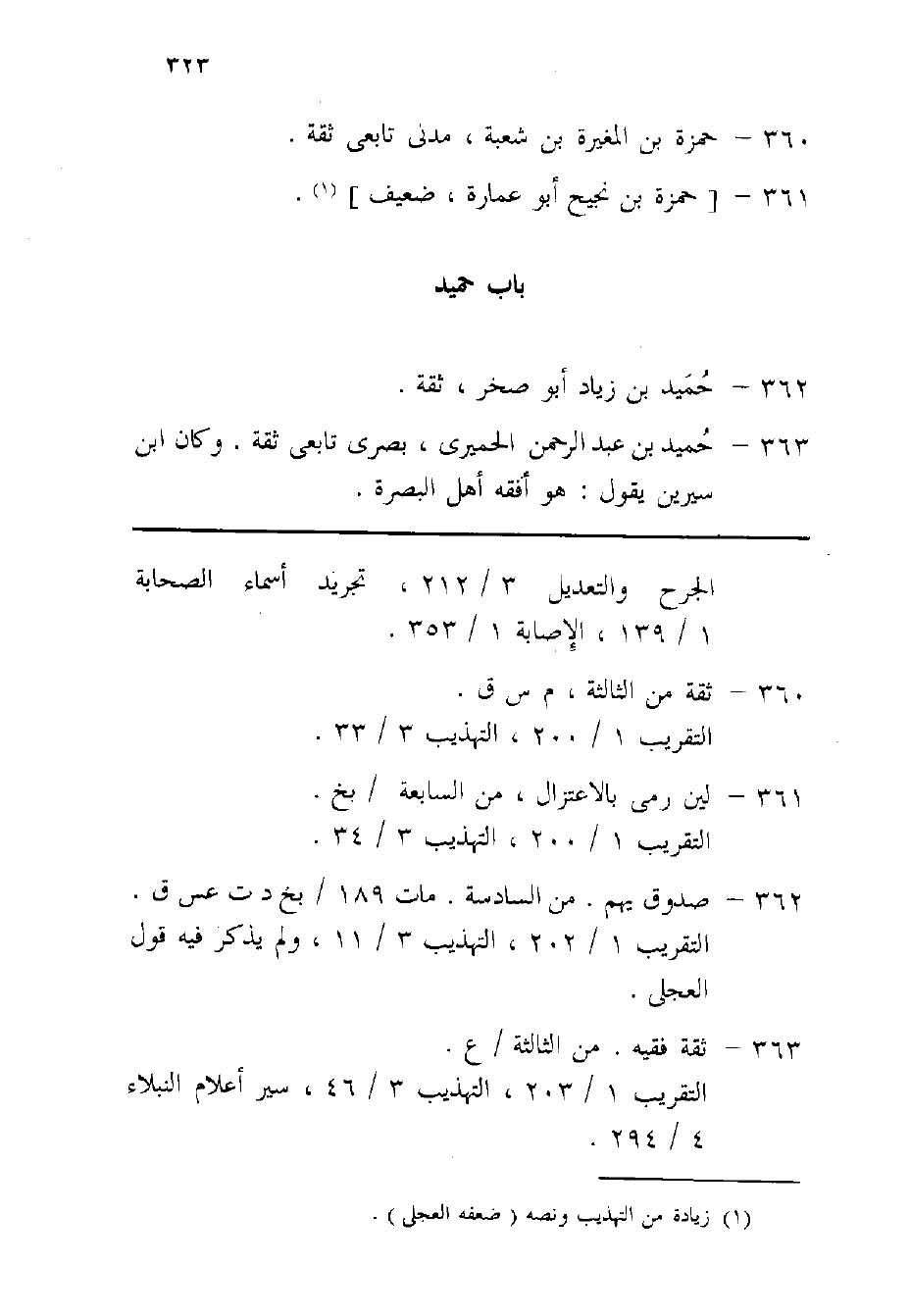 364 - حميد بن عبد الرَّحْمَن بن حميد الرُّؤَاسِي ثِقَة ثَبت عَاقل ناسك