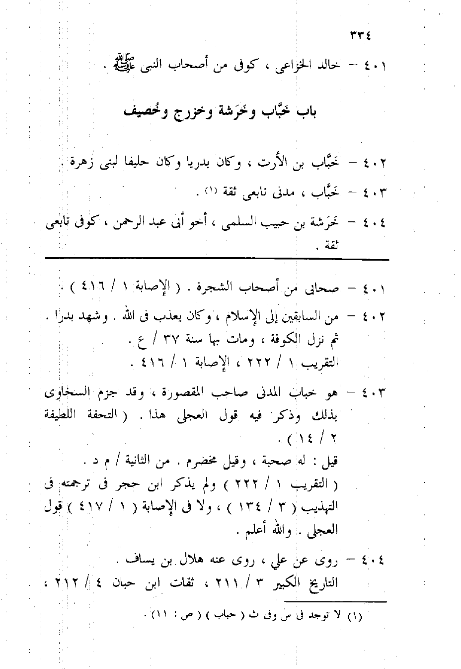 404 - خَرشَة بن حبيب السّلمِيّ أَخُو أبي عبد الرَّحْمَن كوفى تَابِعِيّ ثِقَة