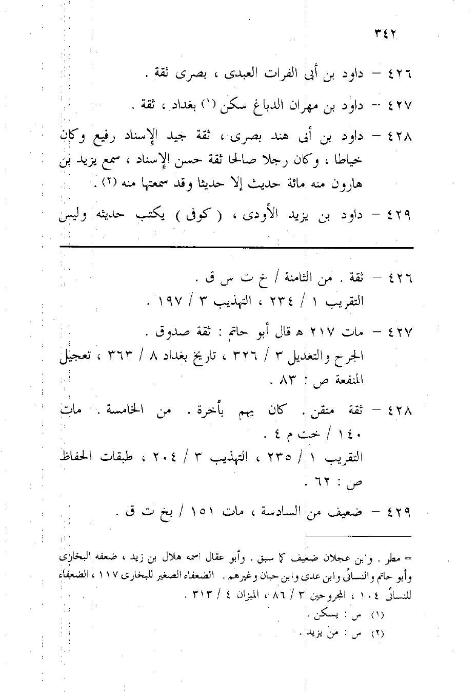 428 - دَاوُد بن أبي هِنْد بصرى ثِقَة جيد الْإِسْنَاد رفيع وَكَانَ خياطا وَكَانَ رجلا صَالحا ثِقَة حسن الْإِسْنَاد سمع يزِيد بن هَارُون مِنْهُ مائَة حَدِيث إِلَّا حَدِيثا وَقد سَمعتهَا مِنْهُ