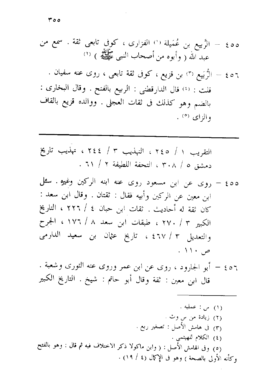 455 - الرّبيع بن عميلة الْفَزارِيّ كوفى تَابِعِيّ ثِقَة سمع من عبد الله وَأَبوهُ من أَصْحَاب النَّبِي صلى الله عَلَيْهِ وَسلم