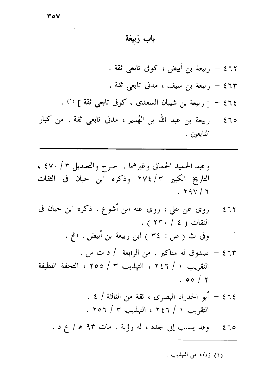 465 - ربيعَة بن عبد الله بن الهدير مدنِي تَابِعِيّ ثِقَة من كبار التَّابِعين