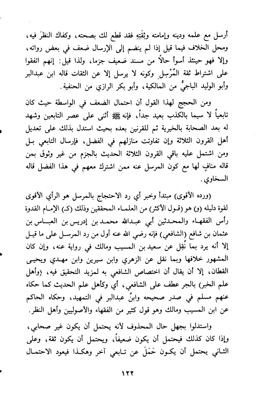 واستدلوا بجهل حال المحذوف لأنه يحتمل أن يكون غير صحابي، وإذا كان كذلك فيحتمل أن يكون ضعيفاً، ويحتمل أن يكون ثقة، وعلى الثاني يحتمل أن يكون حَمَلَ عن تابعي آخر وهكذا فيعود الاحتمال