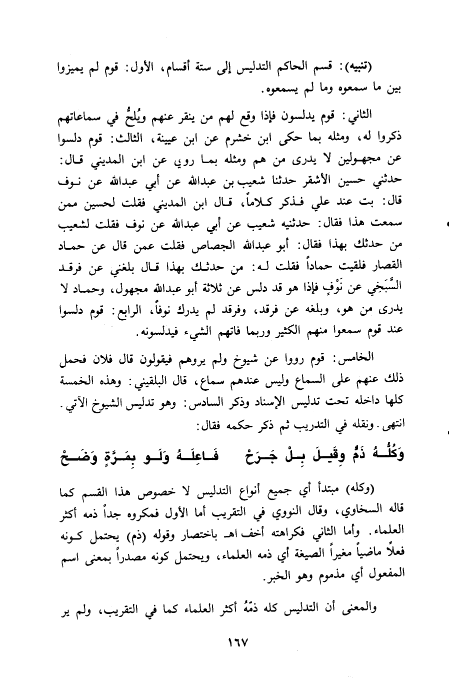 (تنبيه): قسم الحاكم التدليس إلى ستة أقسام: