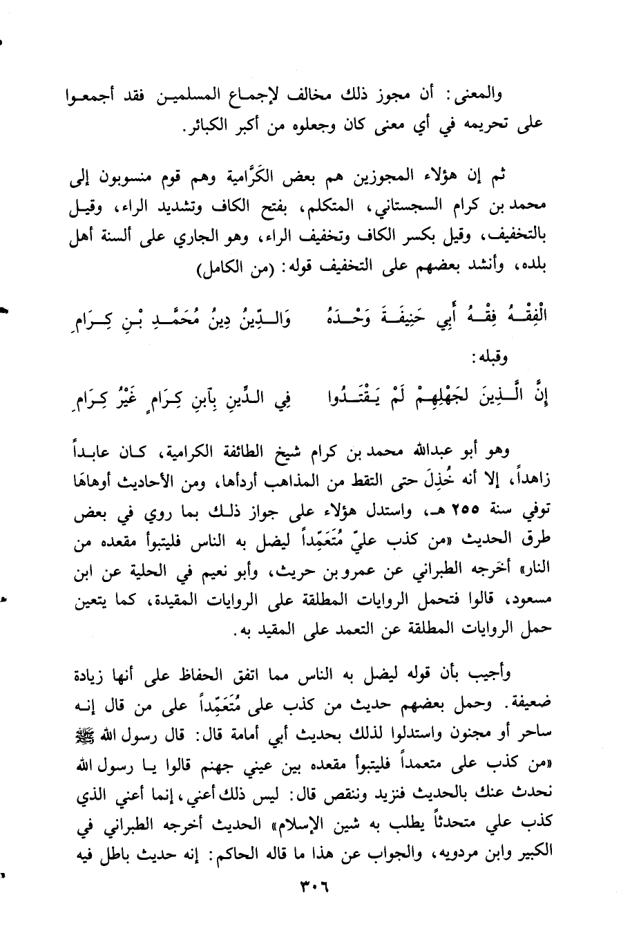 الْفِقْة فِقْهُ أبي حَنِيفَةَ وَحْدَهُ ... وَالدِّينُ دِينُ مُحَمدِ بْنِ كِرَامِ