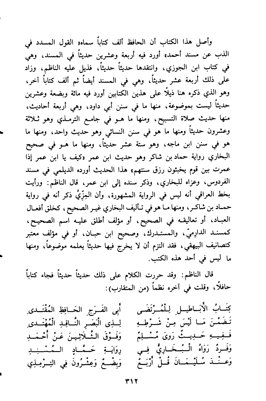 قال الناظم: وقد حررت الكلام على ذلك حديثاً حديثاً فجاء كتاباً حافلاً، وقلت في آخره نظماً (من المتقارب):