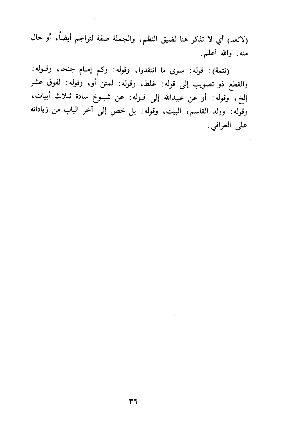 (تَتِمَّة): قوله: سوى ما انتقدوا، وقوله: وكم إمام جنحا. وقوله: والقطع ذو تصويب إلى قوله: غلط، وقوله: لمتن أو, وقوله: لفوق عشر إلخ, وقوله: أو عن عبيد الله إلى قوله: عن شيوخ سادة ثلاث أبيات, وقوله: وولد القاسم، البيت، وقوله: بل خص إلى آخر الباب من زياداته على العراقي.