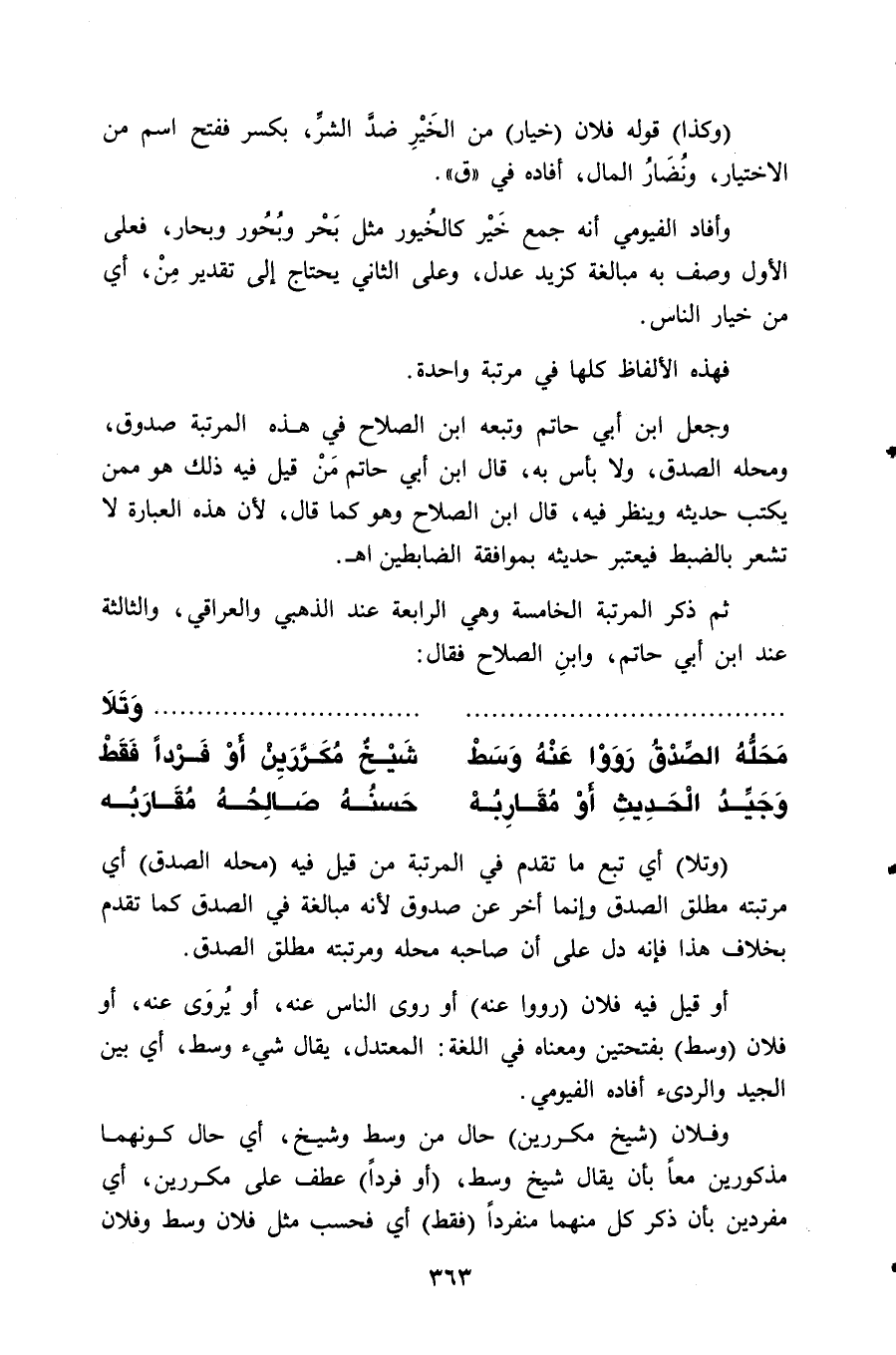 وجعل ابن أبي حاتم وتبعه ابن الصلاح في هذه المرتبة صدوق، ومحله الصدق، ولا بأس به، قال ابن أبي حاتم مَنْ قيل فيه ذلك هو ممن يكتب حديثه وينظر فيه، قال ابن الصلاح وهو كما قال، لأن هذه العبارة لا تشعر بالضبط فيعتبر حديثه بموافقة الضابطين اهـ.