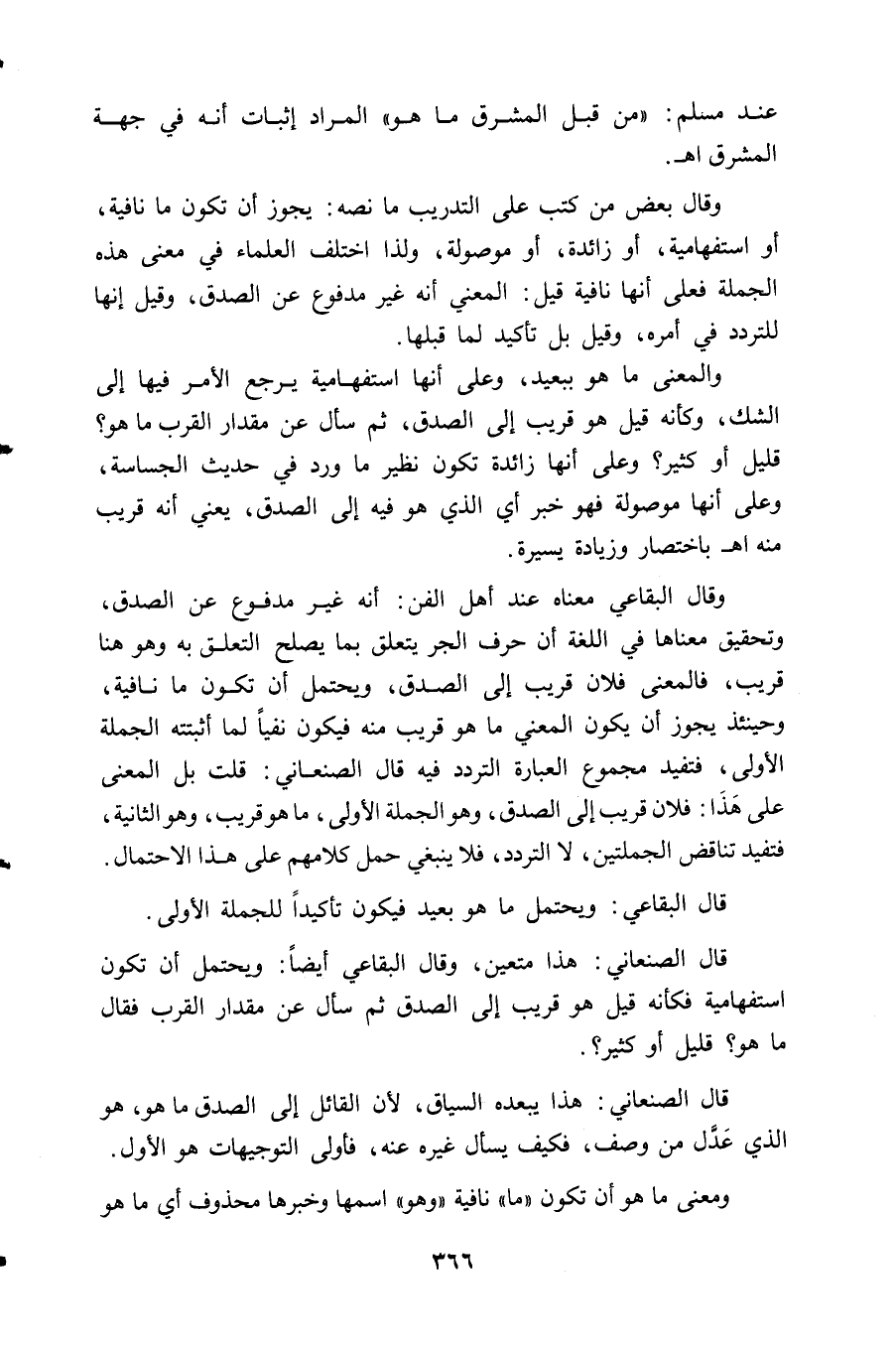 قال الصنعاني: هذا متعين، وقال البقاعي أيضاً: ويحتمل أن تكون استفهامية فكأنه قيل هو قريب إلى الصدق ثم سأل عن مقدار القرب فقال ما هو؟ قليل أو كثير؟.