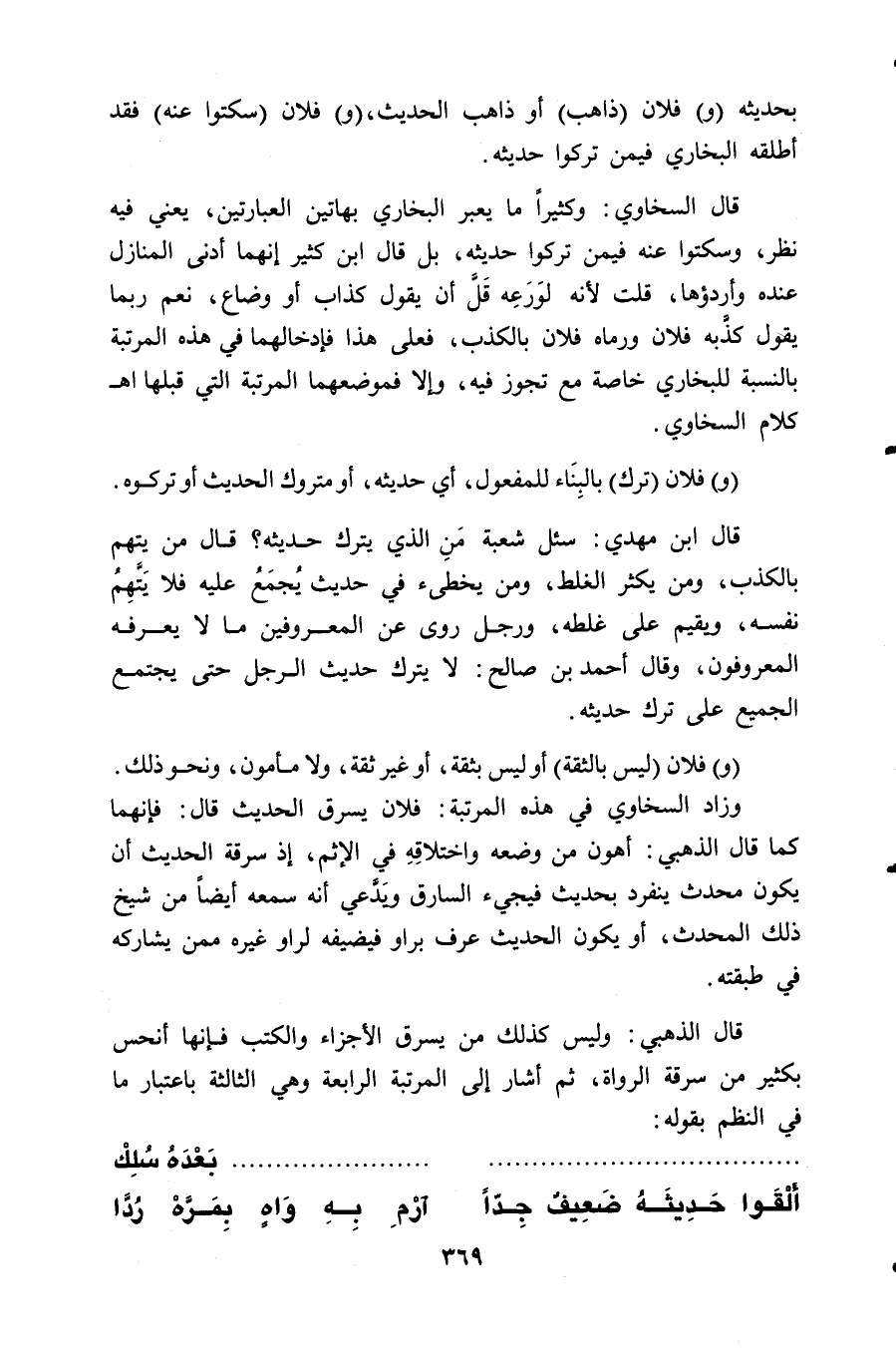 وزاد السخاوي في هذه المرتبة: فلان يسرق الحديث قال: فإنهما كما قال الذهبي: أهون من وضعه واختلاقِهِ في الإثم، إذ سرقة الحديث أن يكون محدث ينفرد بحديث فيجيء السارق ويَدَّعي أنه سمعه أيضاً من شيخ ذلك المحدث، أو يكون الحديث عرف براو فيضيفه لراو غيره ممن يشاركه في طبقته.