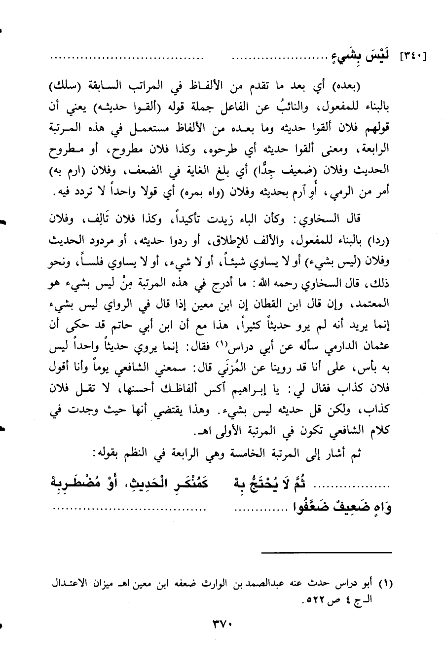 .................. ثَمَّ " لا يُحْتَجَّ بِهْ " ... كَـ " مُنْكِرِ الْحَدِيثِ " أَوْ " مُضْطَرِ بِهْ "