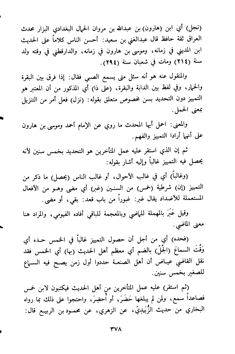 والمعنى: احمل أيها المحدث ما روي عن الإمام أحمد وموسى بن هارون على أنهما أرادا التمييز والفهم.
