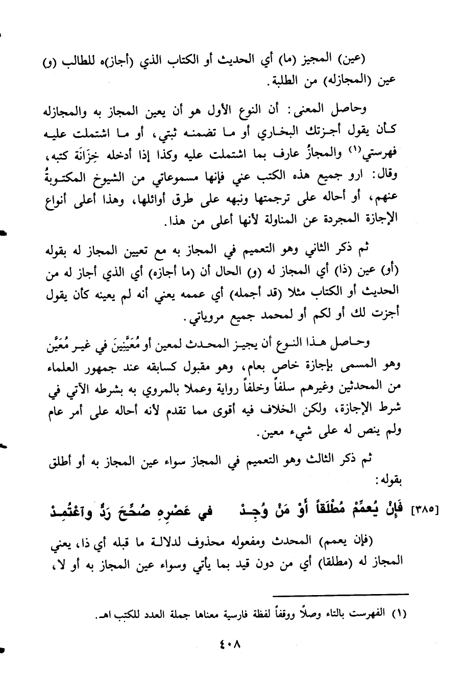 (فَإِنْ يُعَمِّمْ) المحدث ومفعوله محذوف لدلالة ما قبله أي ذا، يعني المجاز له (مطلقا) أي من دون قيد بما يأتي وسواء عين المجاز به أو لا،