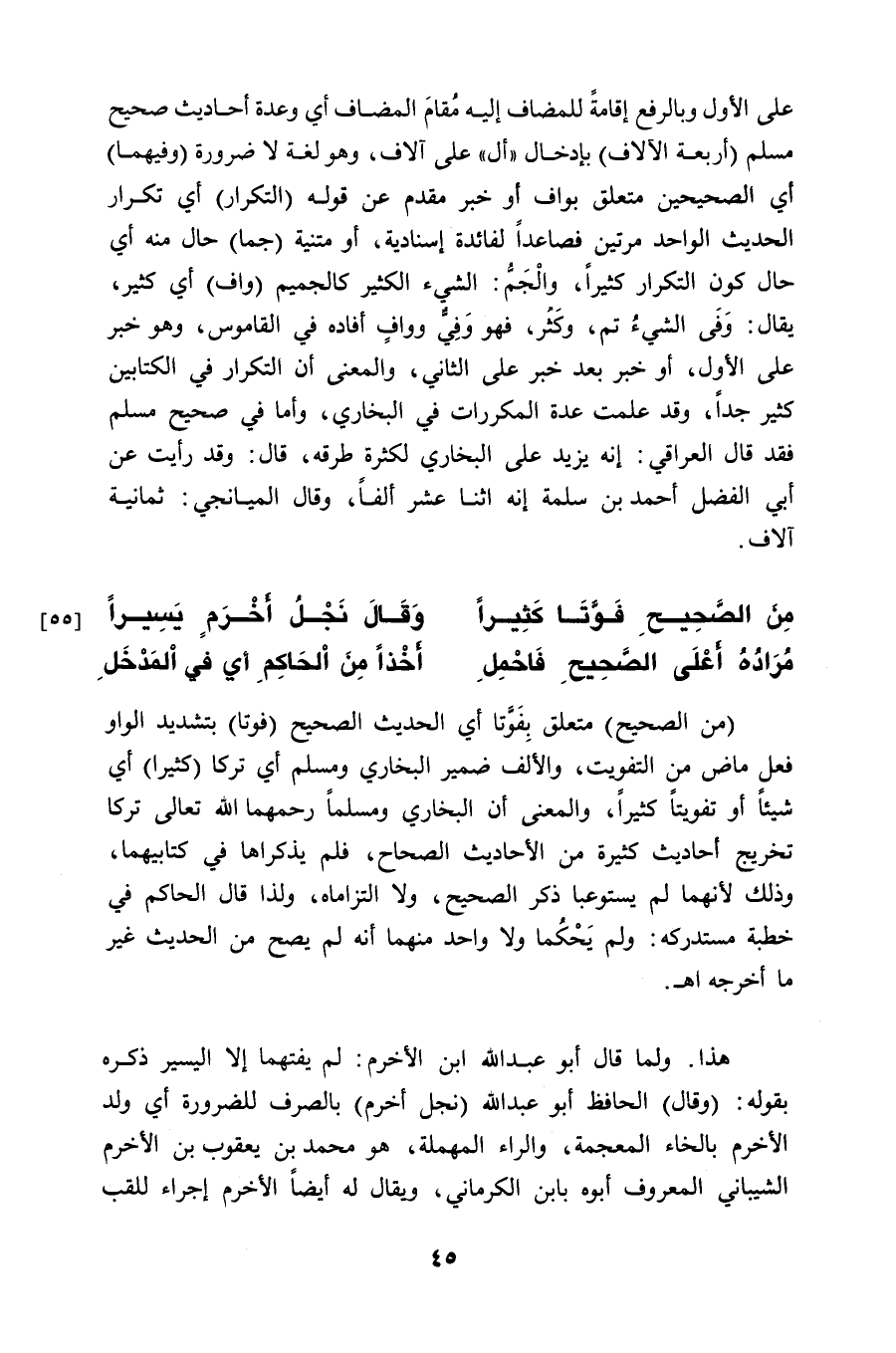 هذا. ولما قال أبو عبد الله ابن الأخرم: لم يفتهما إلا اليسير ذكره بقوله: (وقال) الحافظ أبو عبد الله (نجل أخرم) بالصرف للضرورة أي ولد الأخرم بالخاء المعجمة، والراء المهملة، هو محمد بن يعقوب بن الأخرم الشيباني المعروف أبوه بابن الكرماني، ويقال له أيضاً الأخرم إجراء للقب