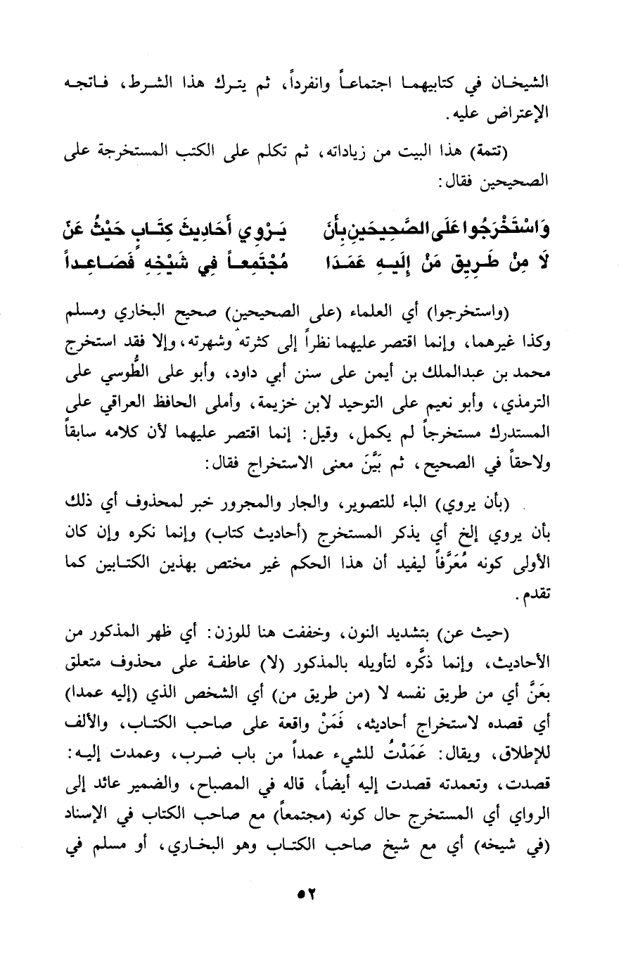 (تَتِمَّة) هذا البيت من زياداته، ثم تكلم على الكتب المستخرجة على الصَّحِيحين فقال: