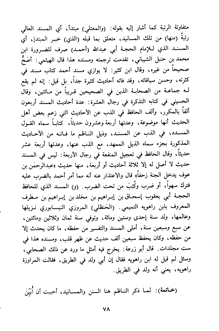 (خاتمة): لما ذكر الناظم هنا السنن والمسانيد، أحببت أن أُبَيِّنَ