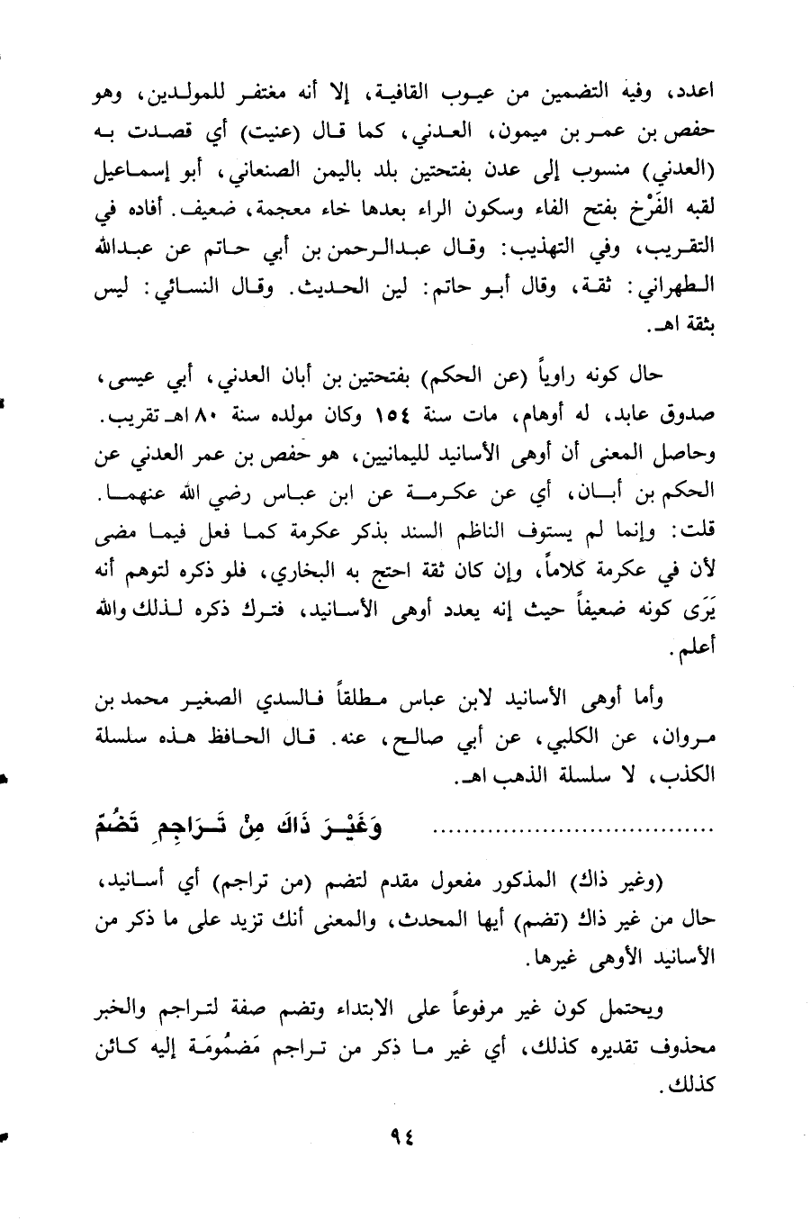 وحاصل المعنى أن أوهى الأسانيد لليمانيين، هو حفص بن عمر العدني عن الحكم بن أبان، أي عن عكرمة عن ابن عباس رضي الله عنهما.