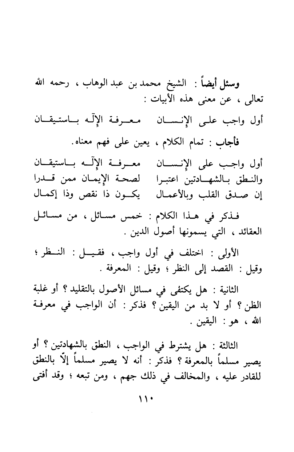 (جواب الشيخ ابن عبد الوهاب عن أول ما يجب على الإنسان معرفته)