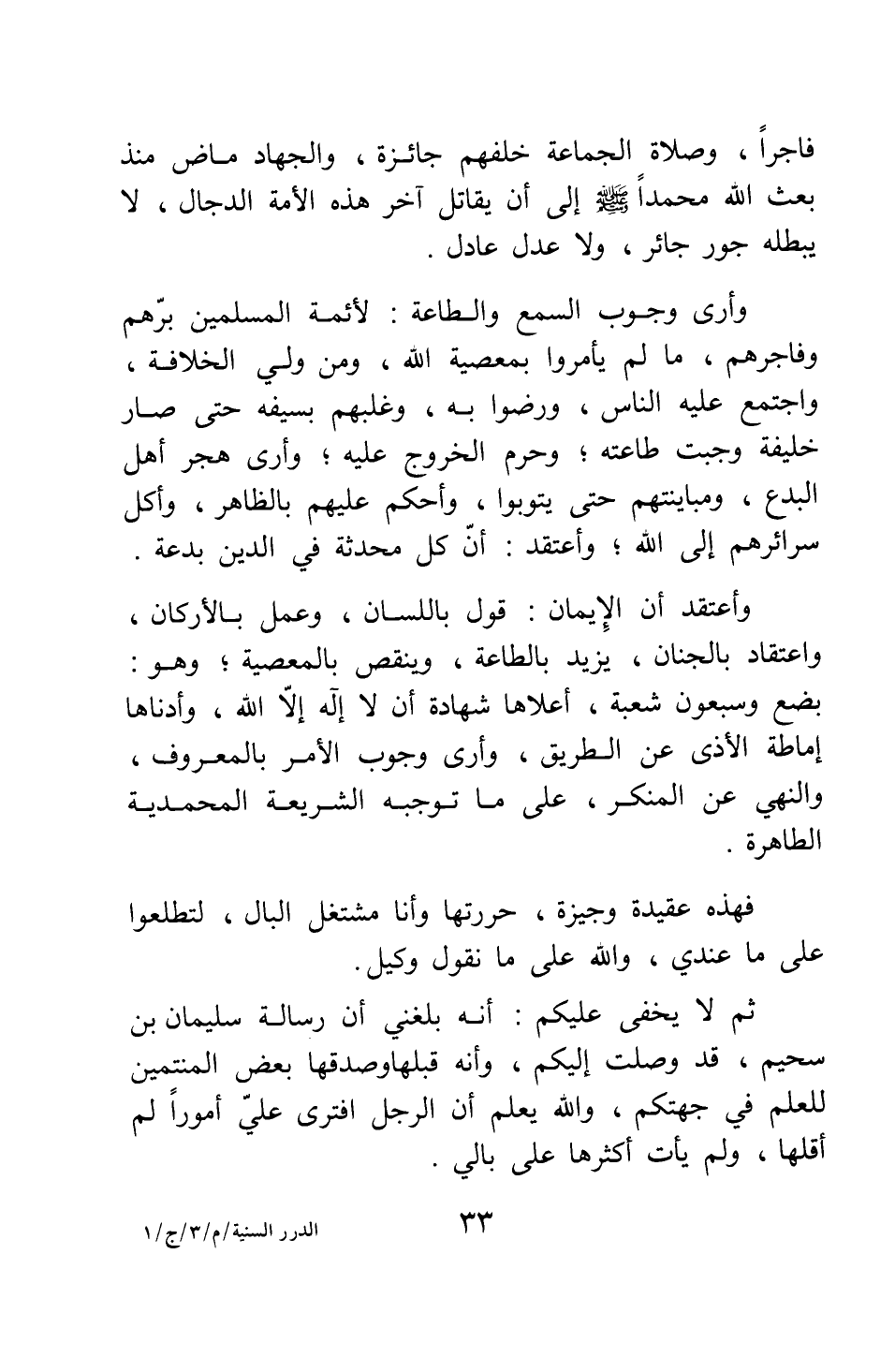 ثم لا يخفى عليكم أنه بلغني أن رسالة سليمان بن سحيم قد وصلت إليكم، وأنه قبلها وصدقها بعض المنتمين للعلم في جهتكم، والله يعلم أن الرجل افترى علي أمورا لم أقلها، ولم يأت أكثرها على بالي.