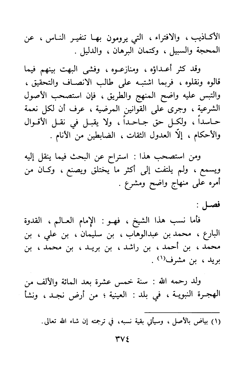 فصل: (نشأة الإمام محمد بن عبد الوهاب وحياته)