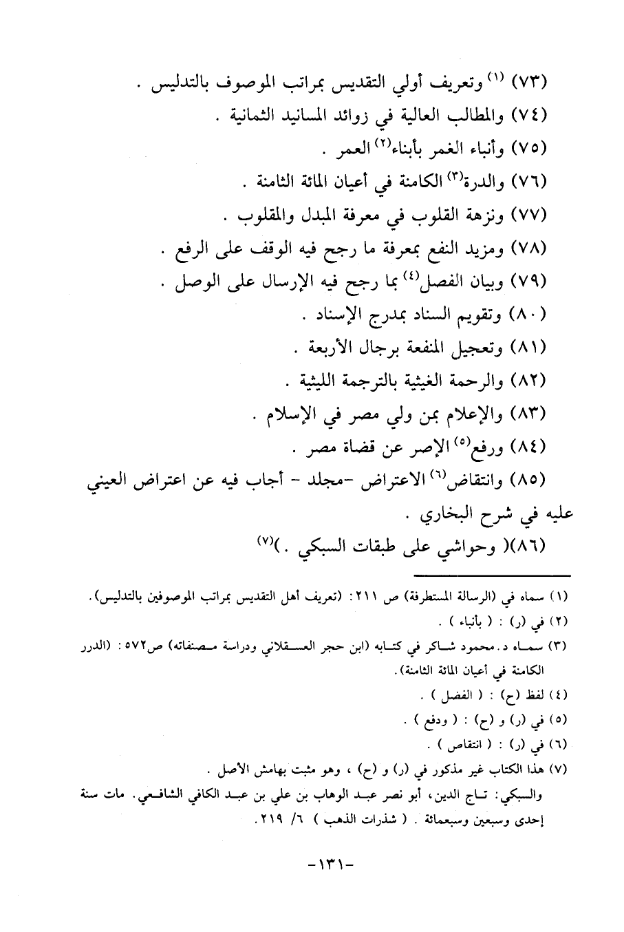 (86) (وحواشي على طَبَقَات السُّبْكِيّ.)