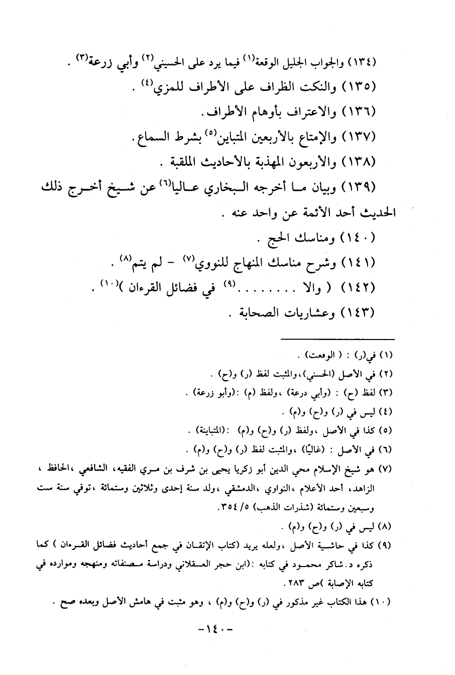 (134) وَالْجَوَاب الْجَلِيل الْوَقْعَة فِيمَا يرد على الْحُسَيْنِي وَأبي زرْعَة.