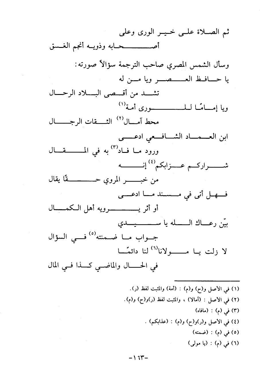 (فَهَل أَتَى فِي مُسْند مَا ادّعى ... أَو أثر يرويهِ أهل الْكَمَال)