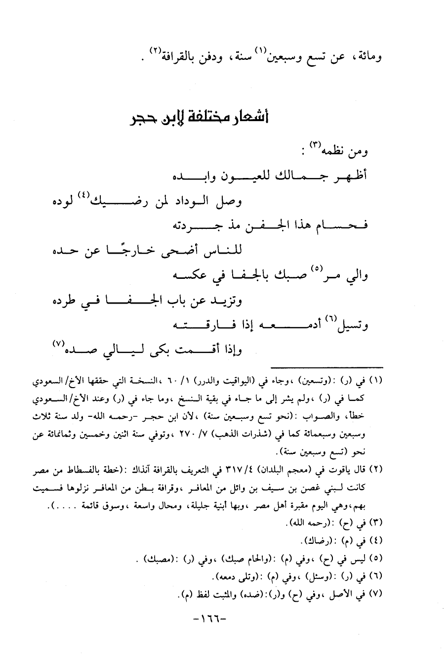 أشعار مُخْتَلفَة لِابْنِ حجر