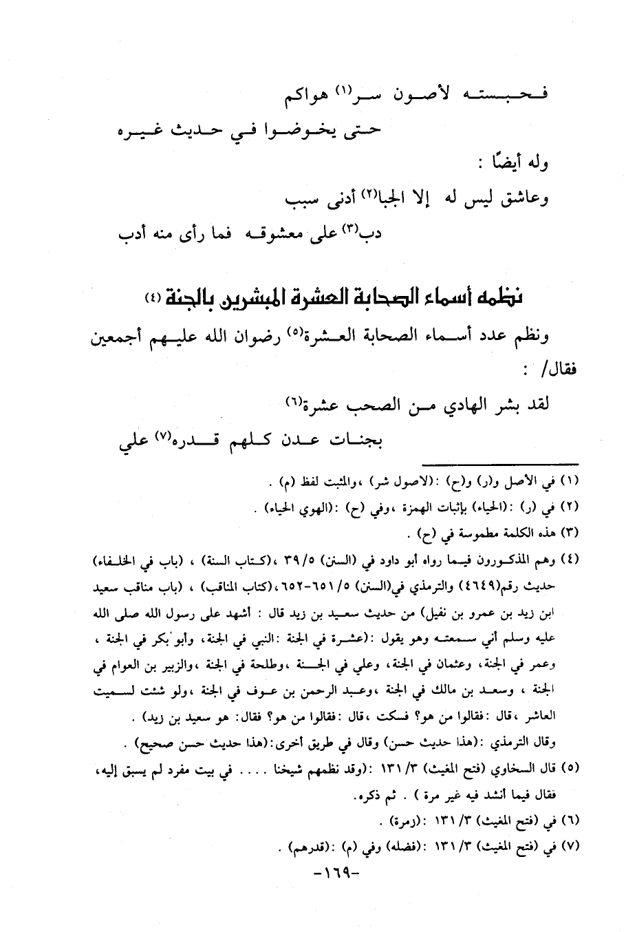 (لقد بشر الْهَادِي من الصحب عشرَة ... بجنات عدن كلهم قدره عَليّ)