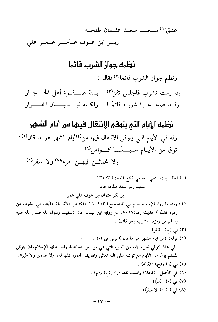 ونظم جَوَاز الشّرْب قَائِما فَقَالَ: