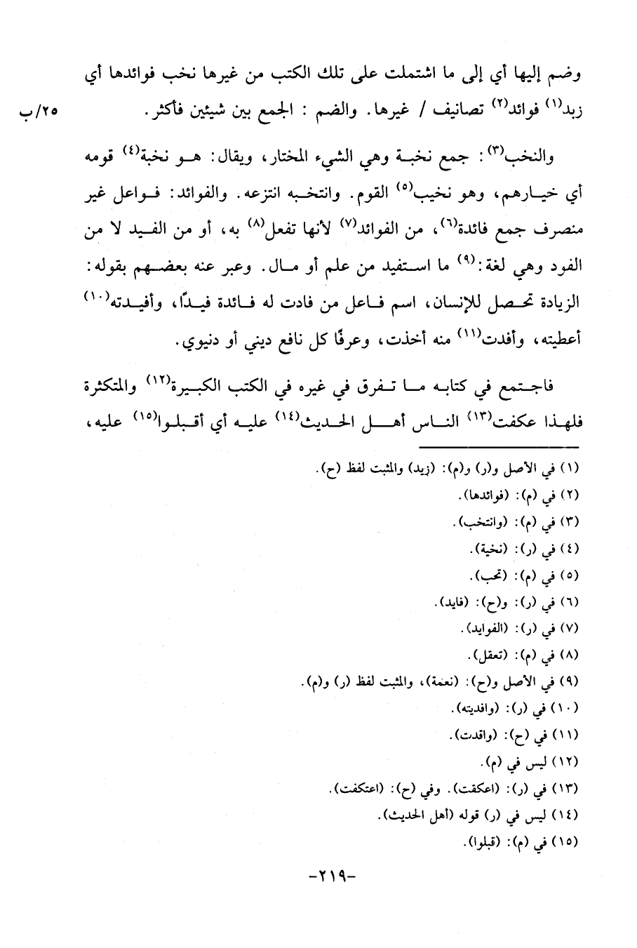 وَضم إِلَيْهَا أَي إِلَى مَا اشْتَمَلت على تِلْكَ الْكتب من غَيرهَا نخب فوائدها أَي زبد فَوَائِد تصانيف / غَيرهَا. وَالضَّم: الْجمع بَين شَيْئَيْنِ فَأكْثر.