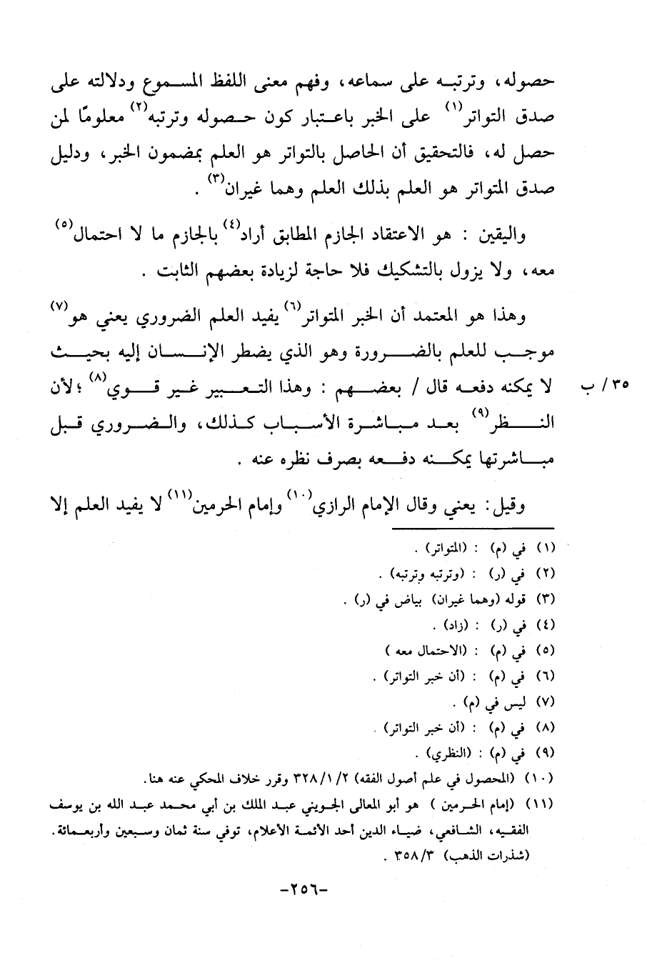وَهَذَا هُوَ الْمُعْتَمد أَن الْخَبَر الْمُتَوَاتر يُفِيد الْعلم الضَّرُورِيّ يَعْنِي هُوَ مُوجب للْعلم بِالضَّرُورَةِ وَهُوَ الَّذِي يضْطَر الْإِنْسَان إِلَيْهِ بِحَيْثُ لَا يُمكنهُ دَفعه قَالَ / بَعضهم: وَهَذَا التَّعْبِير غير قوي؛ لِأَن النّظر بعد مُبَاشرَة الْأَسْبَاب كَذَلِك، والضروري قبل مباشرتها يُمكنهُ دَفعه بِصَرْف نظره عَنهُ.