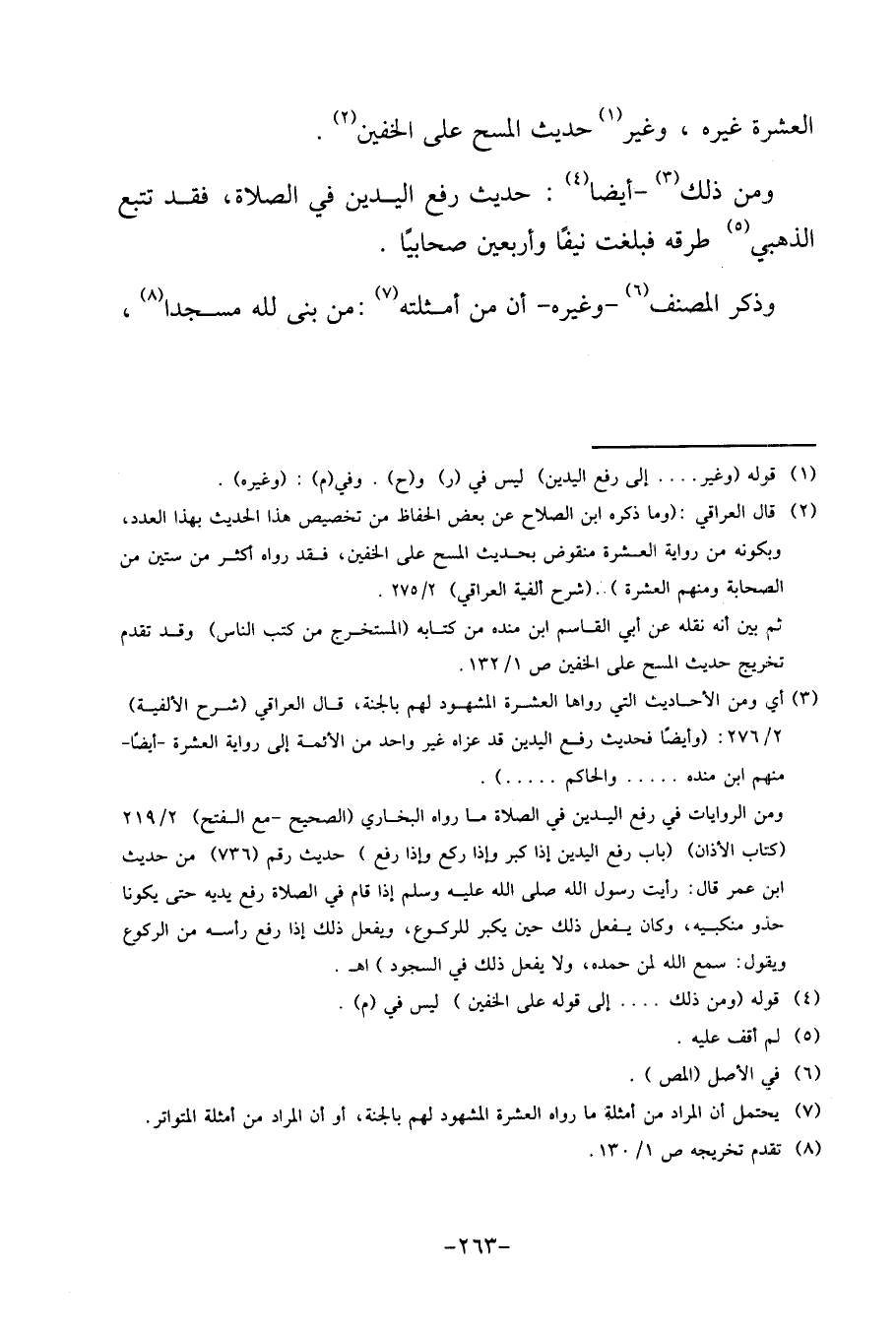 وَمن ذَلِك - أَيْضا: حَدِيث رفع الْيَدَيْنِ فِي الصَّلَاة، فقد تتبع الذَّهَبِيّ طرقه فبلغت نيفاً وَأَرْبَعين صحابياً.