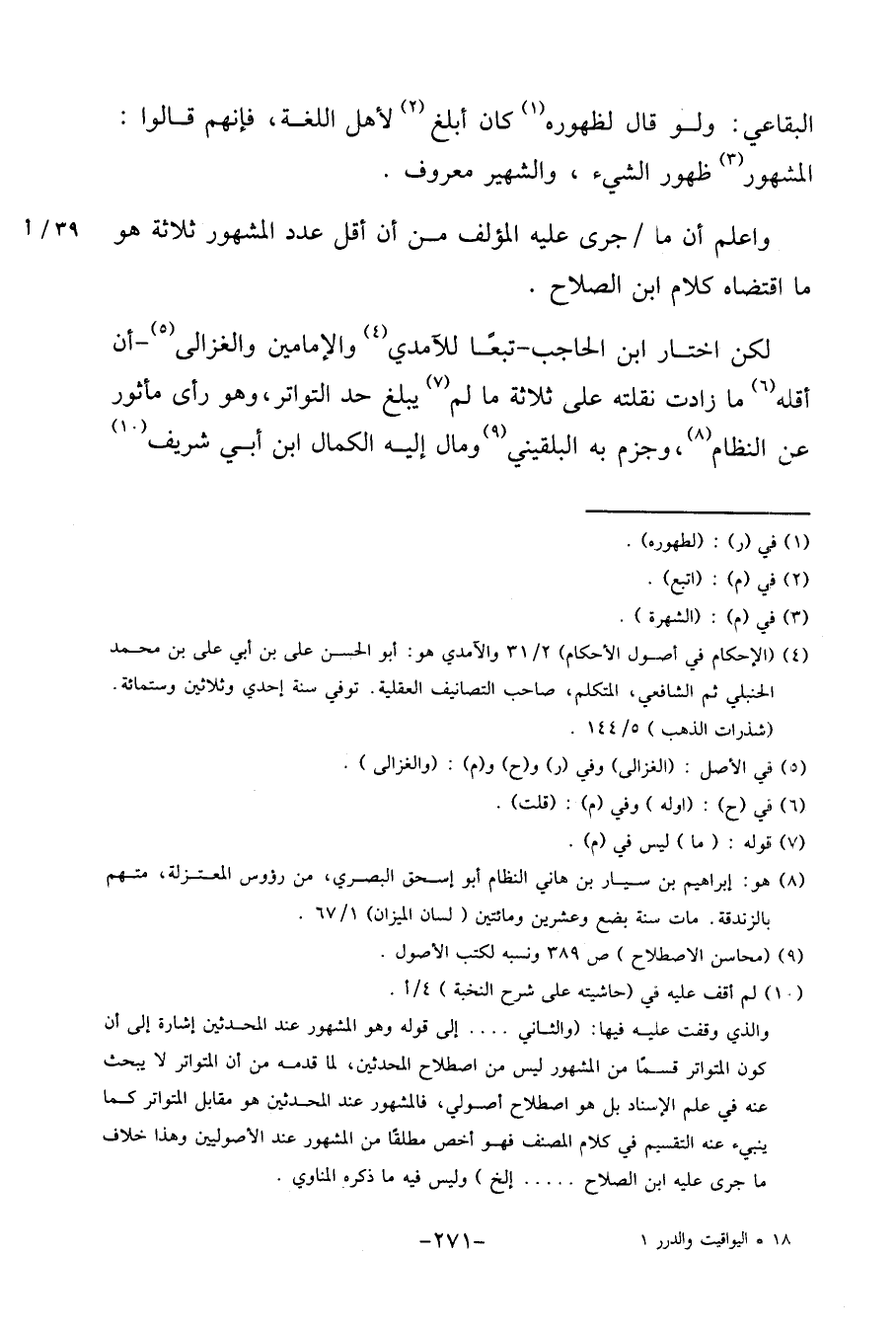 وَاعْلَم أَن مَا / جرى عَلَيْهِ الْمُؤلف من أَن أقل عدد الْمَشْهُور ثَلَاثَة هُوَ مَا اقْتَضَاهُ كَلَام ابْن الصّلاح.