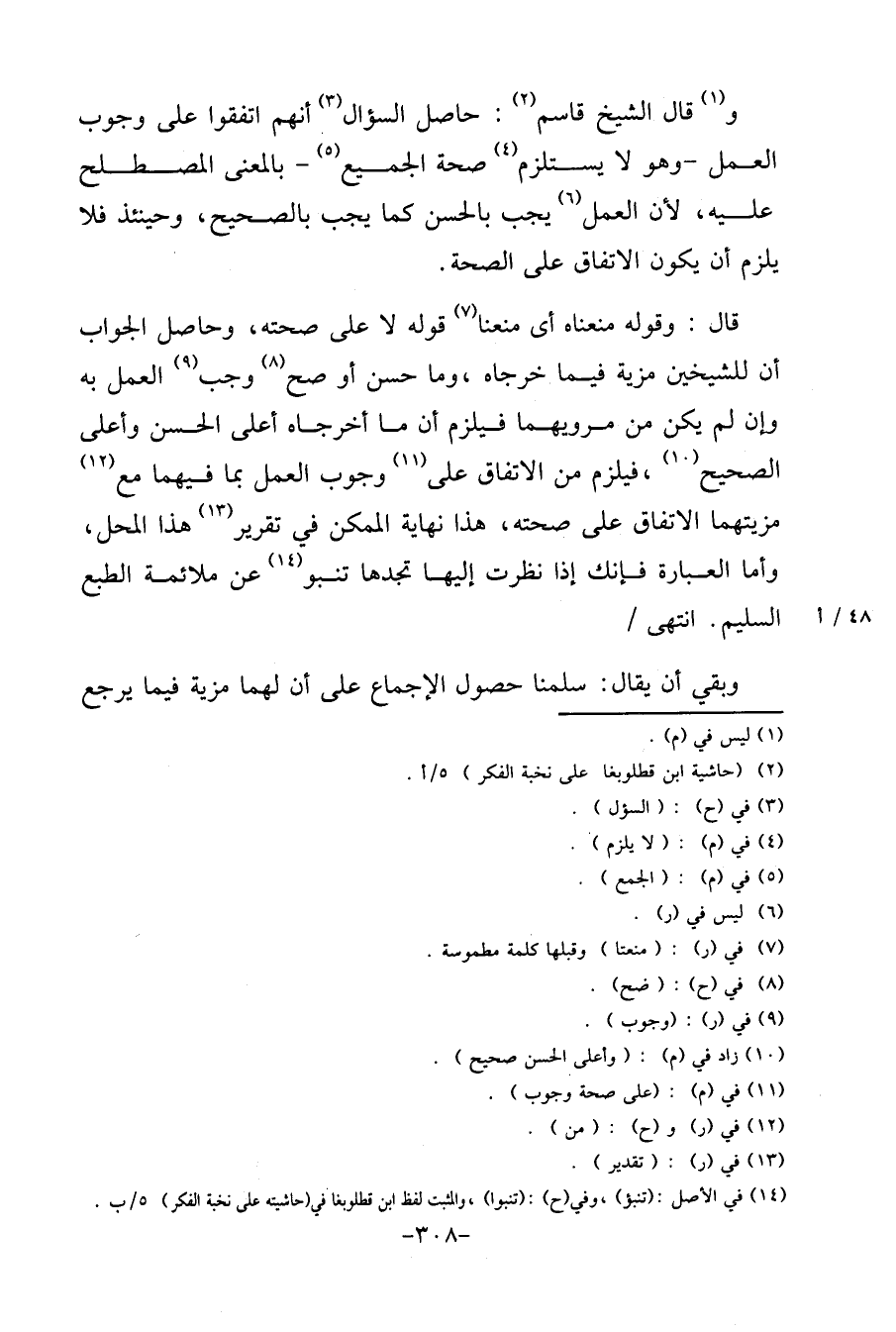 وَقَالَ الشَّيْخ قَاسم: حَاصِل السُّؤَال أَنهم اتَّفقُوا على وجوب الْعَمَل - وَهُوَ لَا يسْتَلْزم صِحَة الْجَمِيع - بِالْمَعْنَى المصطلح عَلَيْهِ، لِأَن الْعَمَل يجب بالْحسنِ كَمَا يجب بِالصَّحِيحِ، وَحِينَئِذٍ فَلَا يلْزم أَن يكون الِاتِّفَاق على الصِّحَّة.