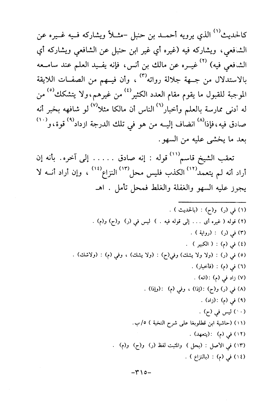 تعقب الشَّيْخ قَاسم قَوْله: إِنَّه صَادِق ... ... إِلَى آخِره. بِأَنَّهُ إِن أَرَادَ أَنه لم يتَعَمَّد الْكَذِب فَلَيْسَ مَحل النزاع، وَإِن أَرَادَ أَنه لَا يجوز عَلَيْهِ السَّهْو والغفلة والغلط فَمحل تَأمل. اه