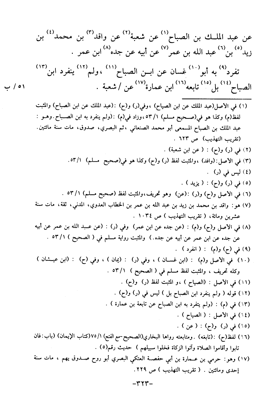 تفرد بِهِ أَبُو غَسَّان عَن ابْن الصَّباح، وَلم ينْفَرد ابْن الصَّباح بل تَابعه ابْن عمَارَة عَن / شُعْبَة.
