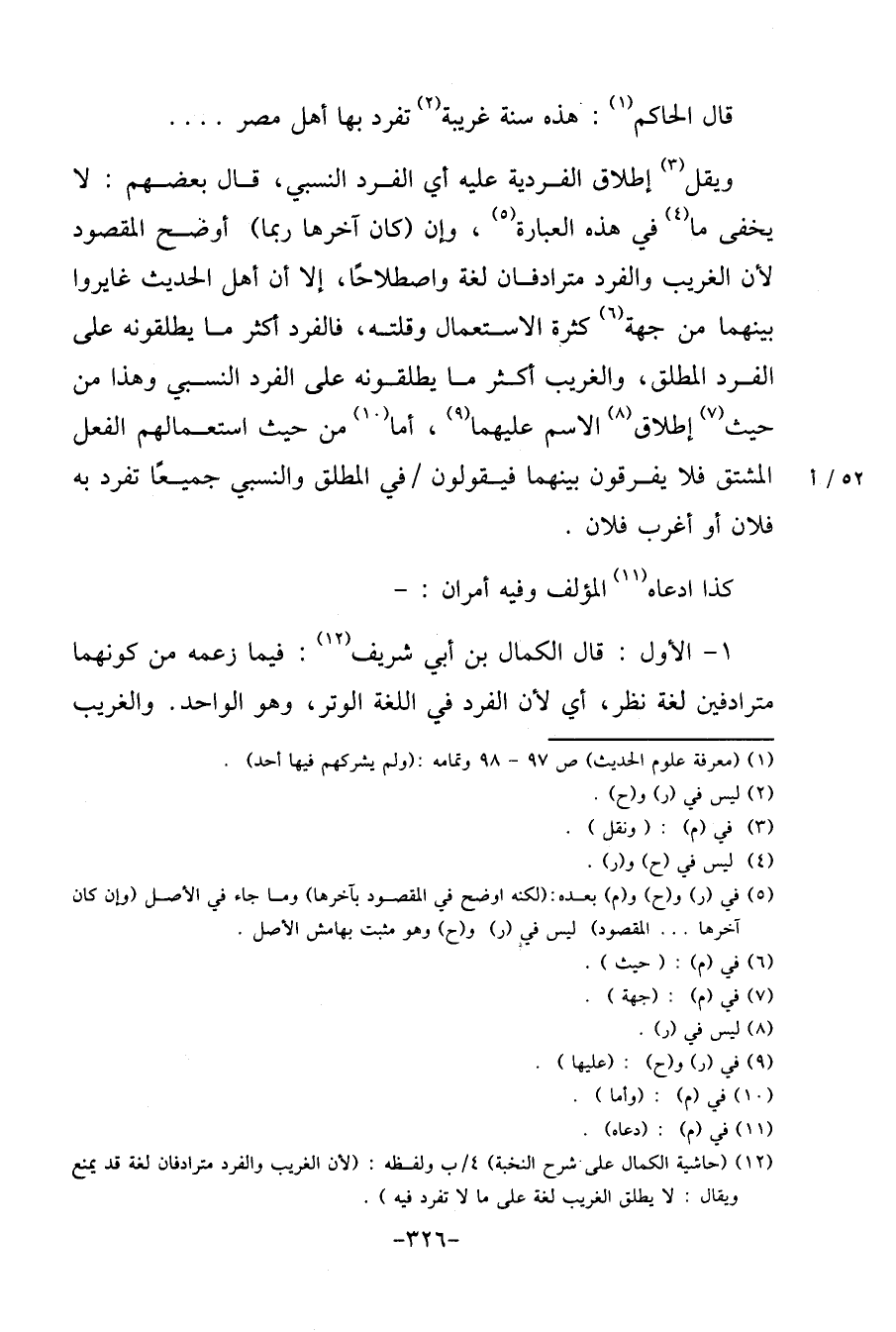 1 - الأول: قَالَ الْكَمَال بن أبي شرِيف: فِيمَا زَعمه من كَونهمَا مترادفين لُغَة نظر، أَي لِأَن الْفَرد فِي اللُّغَة الْوتر، وَهُوَ الْوَاحِد. والغريب