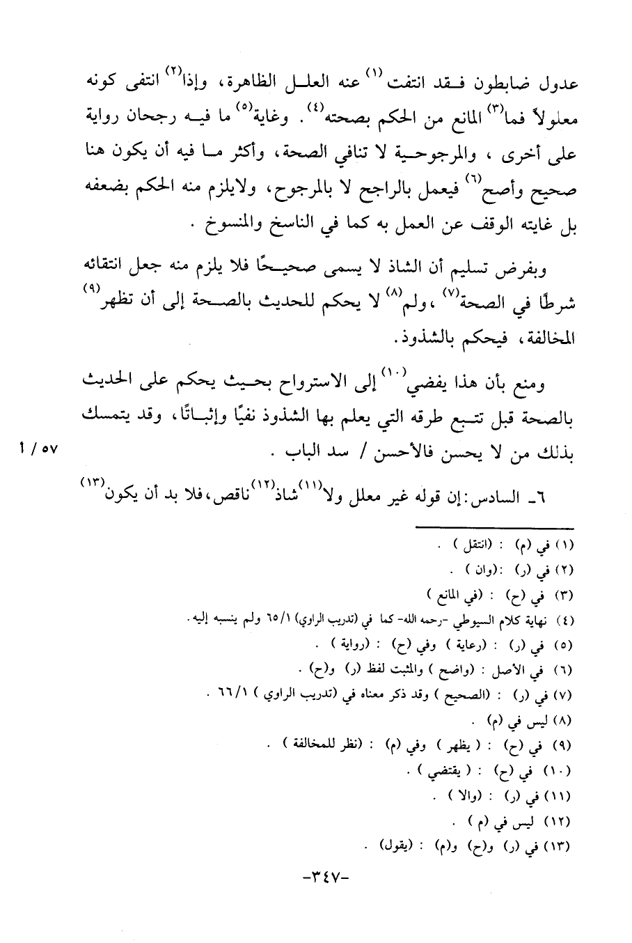 6 - السَّادِس: إِن قَوْله غير مُعَلل وَلَا شَاذ نَاقص، فَلَا بُد أَن يكون
