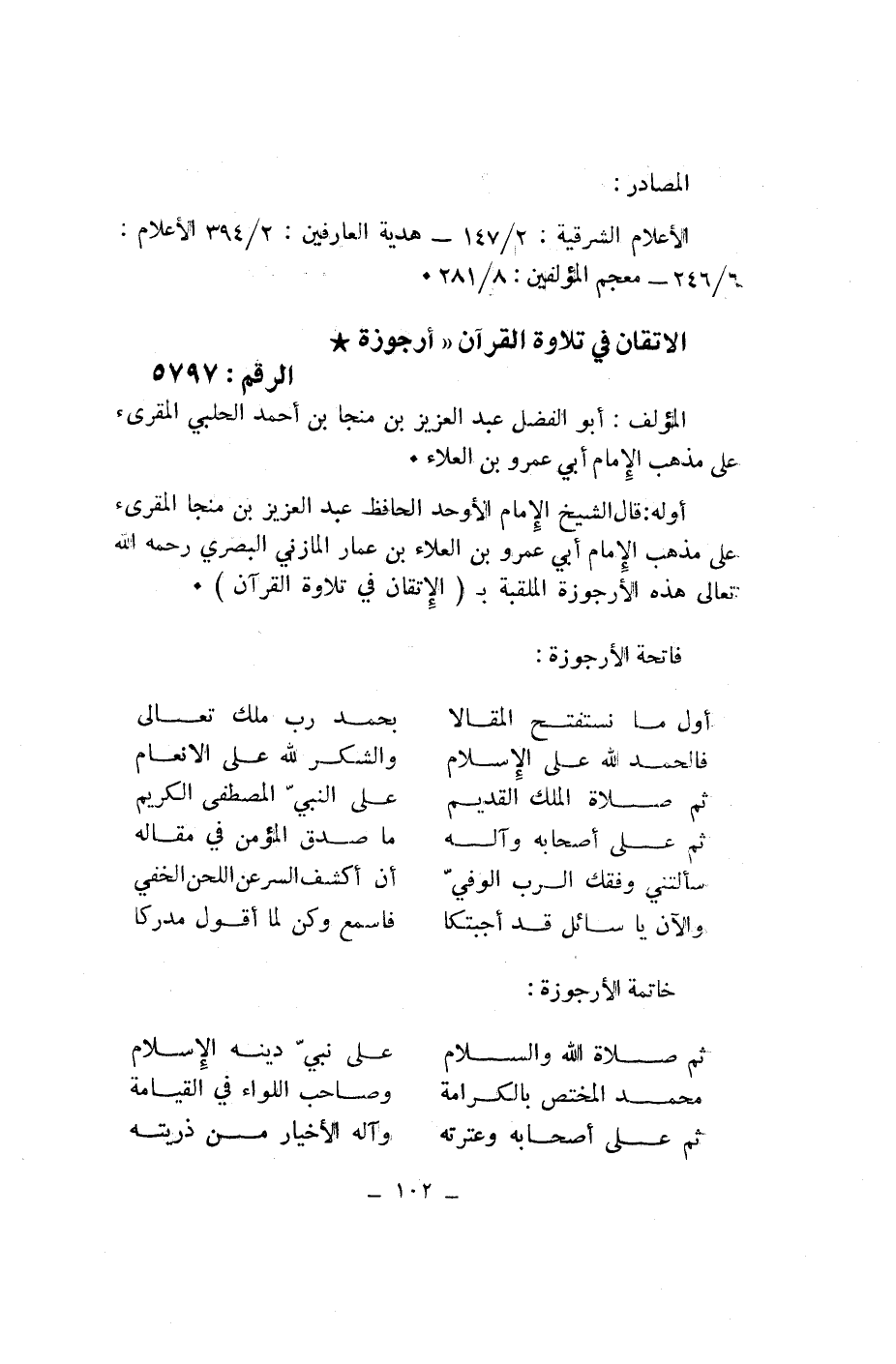 الاتقان في تلاوة القرآن «أرجوزة* الرقم: 5797